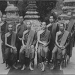 Senior monks of Luang Prabang posing for a group portrait at Vat Xiang Thong in 1936. The Supreme Patriarch of Laos sits in the first row, second from left.