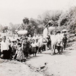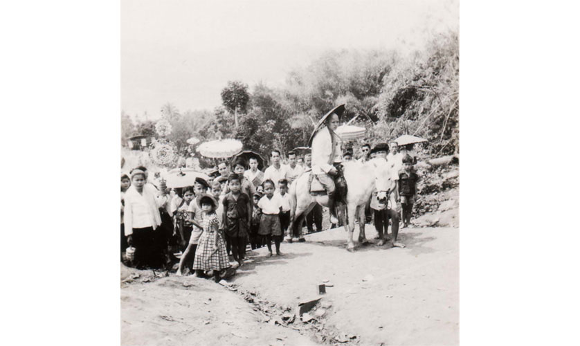 Nak procession to Vat Chomkhao Manilat, Houaysai, Bokeo province, before the Upasombot ceremony, probably 1957.