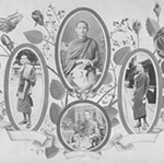 Page of an album made by Pha Khamfan Silasangvara Maha Thela. He combines original photographs of himself and decorations (roses and butterflies) in a collage. The album contains only photographs related to his life and can be called a "private" album. They date from the late 1920s and are all Silver Gelatin DOP prints.