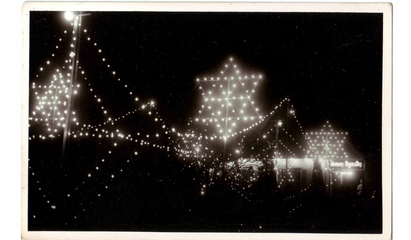 Pha Oun Huean Hasapanya Maha Thela: Night illuminations at Vat Nong Si Khun Muang, Luang Prabang, 1950s. Gift by the photographer to Pha Khamchan Virachitta Maha Thela.
